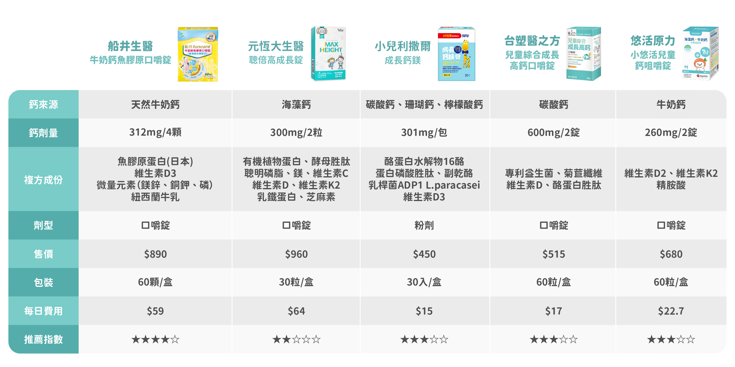 兒童鈣片比較表