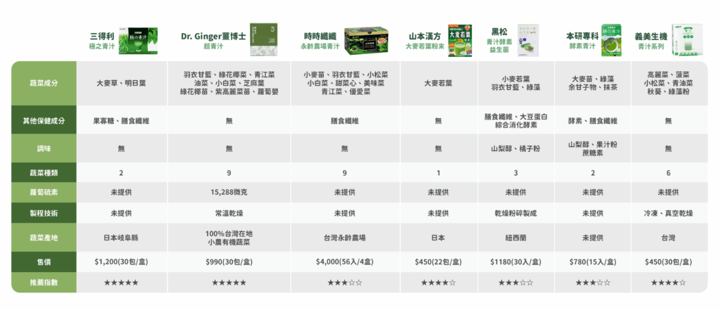 認真評比後發現:「每一款青汁都有不同的特色!」